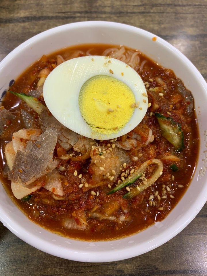 일단 시켜 먹는 기본 구성은 서면 본점 기준으로 비빔밀면(대)에 만두 추가다! 서면 본점은 다음과 같았다.