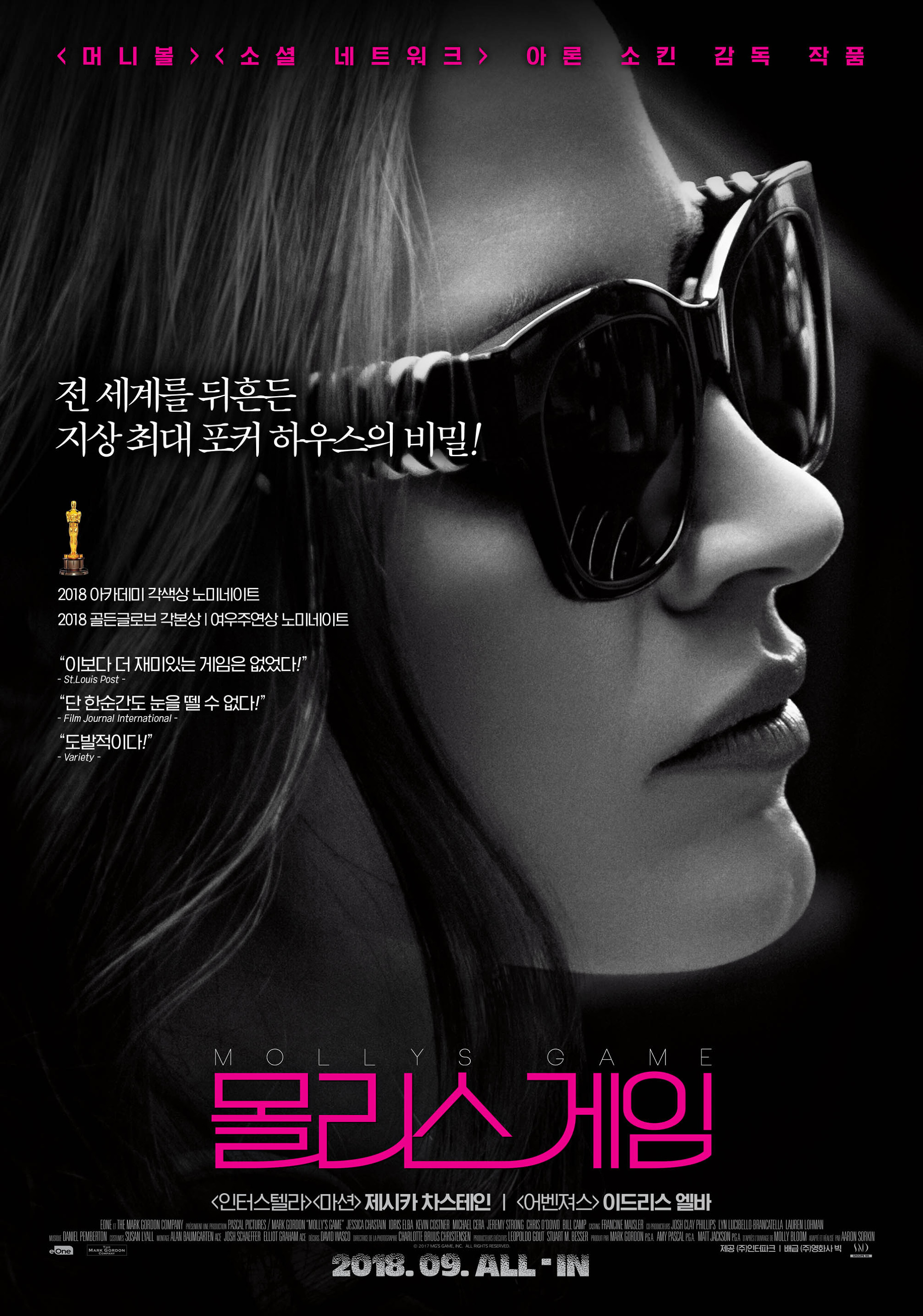 몰리스 게임은 2018년 9월 6일 대한민국에서 개봉한 미국 대중 상업 영화이다. 아론 소킨 감독의 작품으로 제시카 차스테인, 이드리스 엘바, 케빈 코스트너가 출연하며 러닝타임 140분에 15세 관람 등급이다.