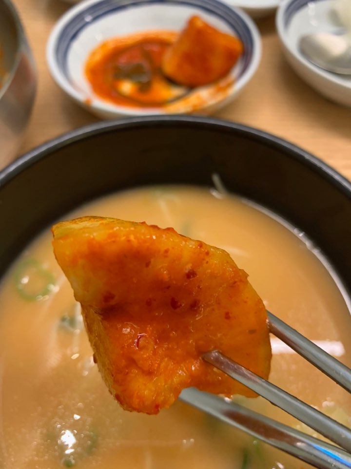 요새 육수는 다 간이 배어 있었어 (나는 따뜻한 육수를 장국이라고 부르는 속초에 정착한 지금은 이미 다 돌아가신 함흥냉면 1세대 할아버지들에게 냉면 입맛을 배웠다!) 면옥이니 전통에 따라 곰탕도 시켰다. 진짜 사골 국물 맛이 어떤지 보기 위해서다.