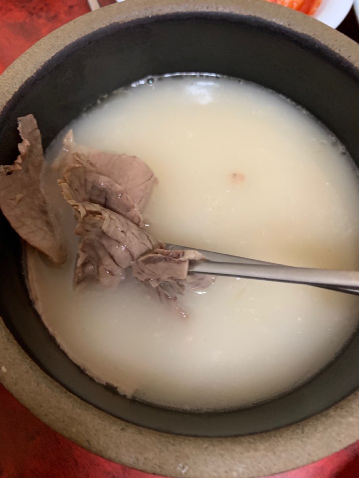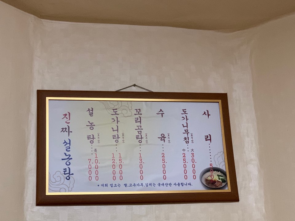 국물이 다른 설농탕 집하고 차원이 다르다. 집에 포장해가면 한눈에 보이는데 냉장고에 넣으면 신속하게 굳는다.