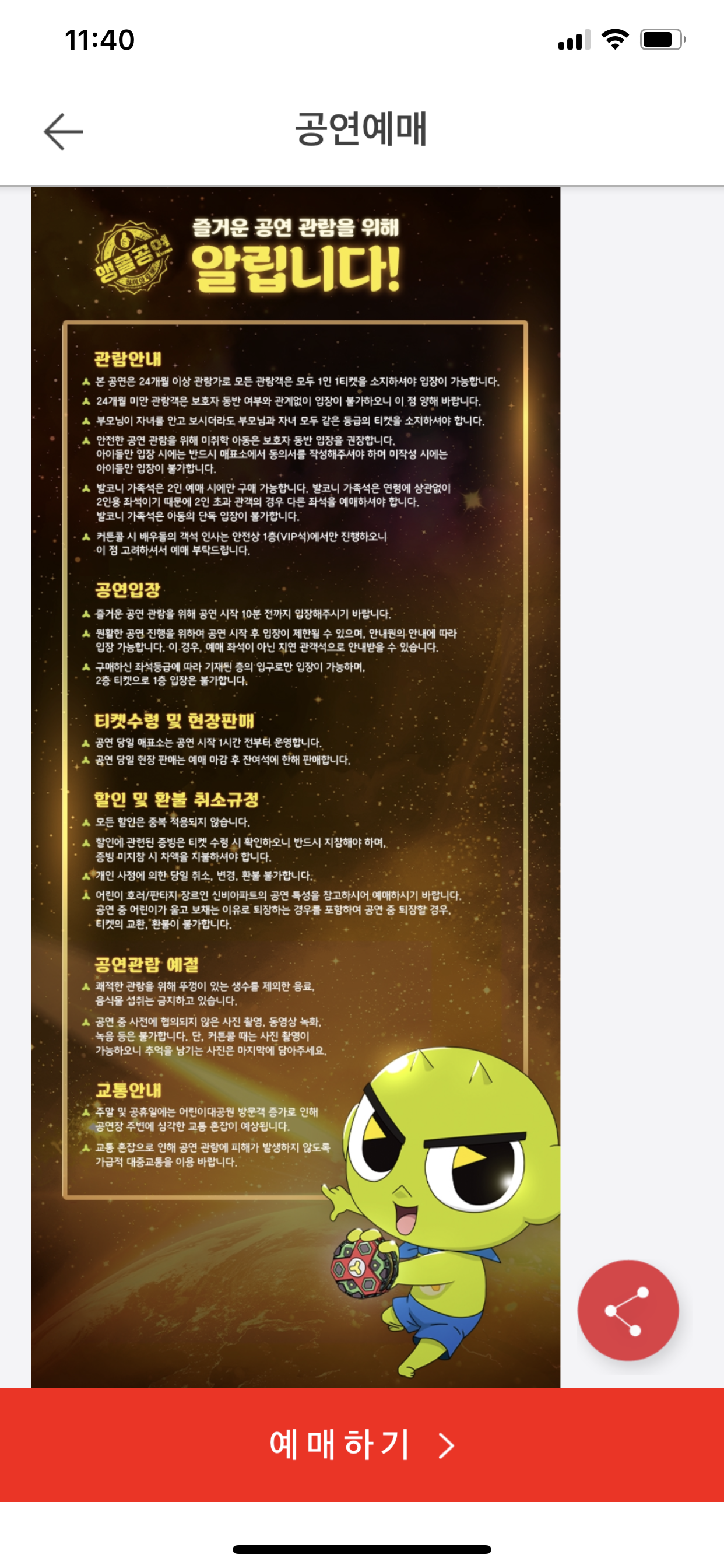 그런데 작은 주인님 두명을 모신 내 경험으로 이런 상시 할인 공연은 현장 할인도 똑같이 진행된다. 공연을 하는 회사에 전화해서 문의했더니 당연히!